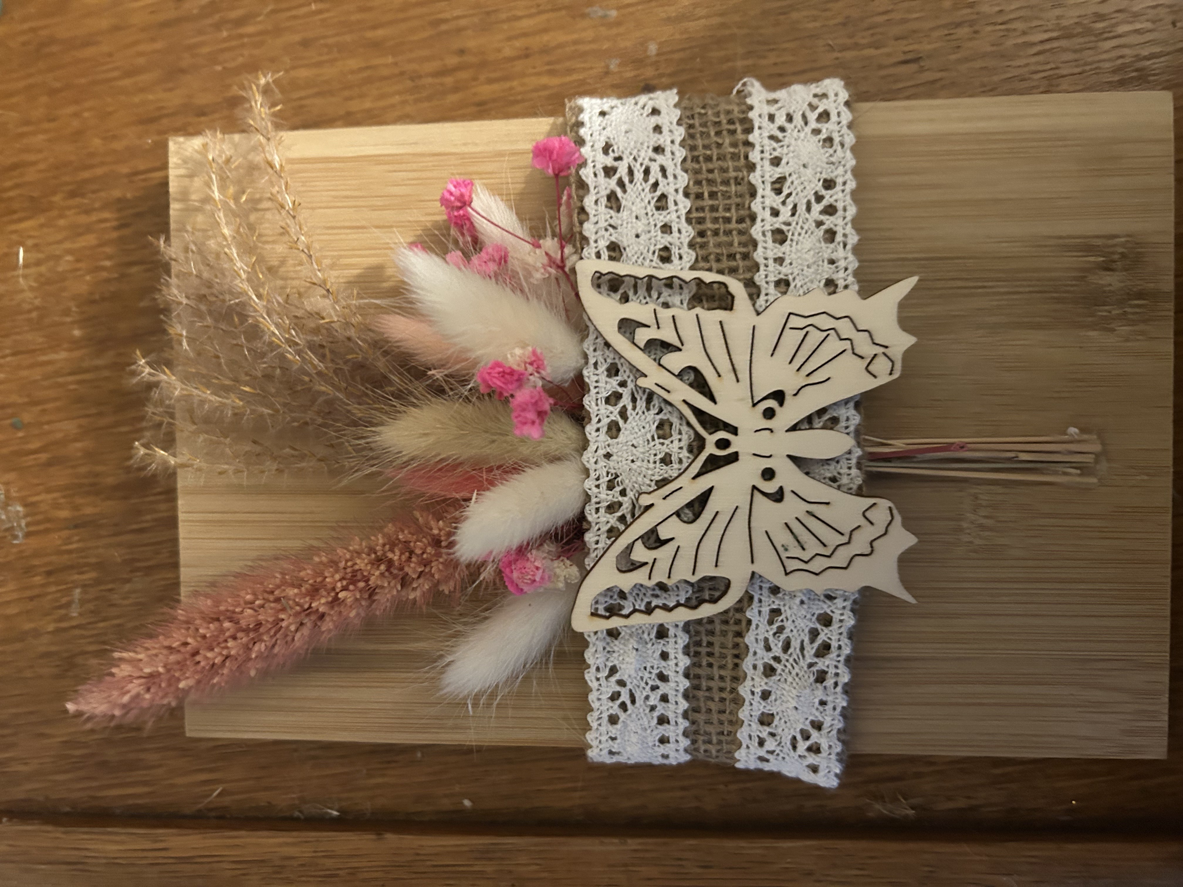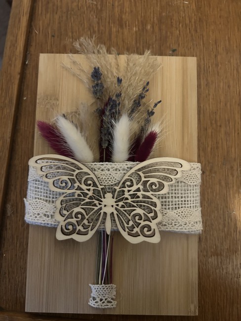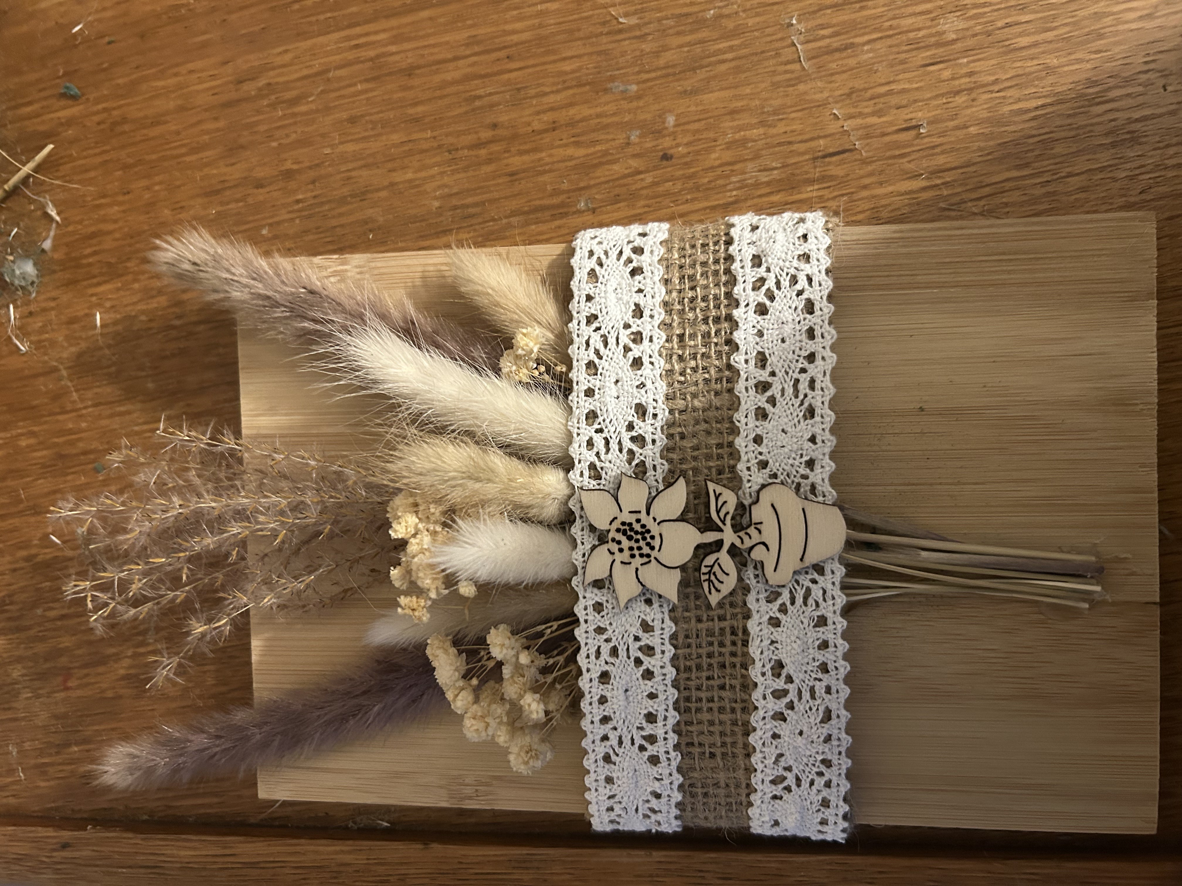 Bouquet séchée sur planche de bois