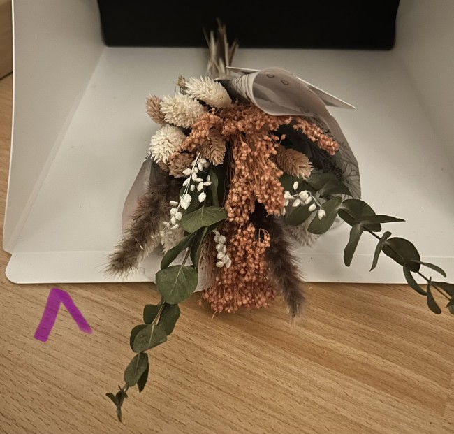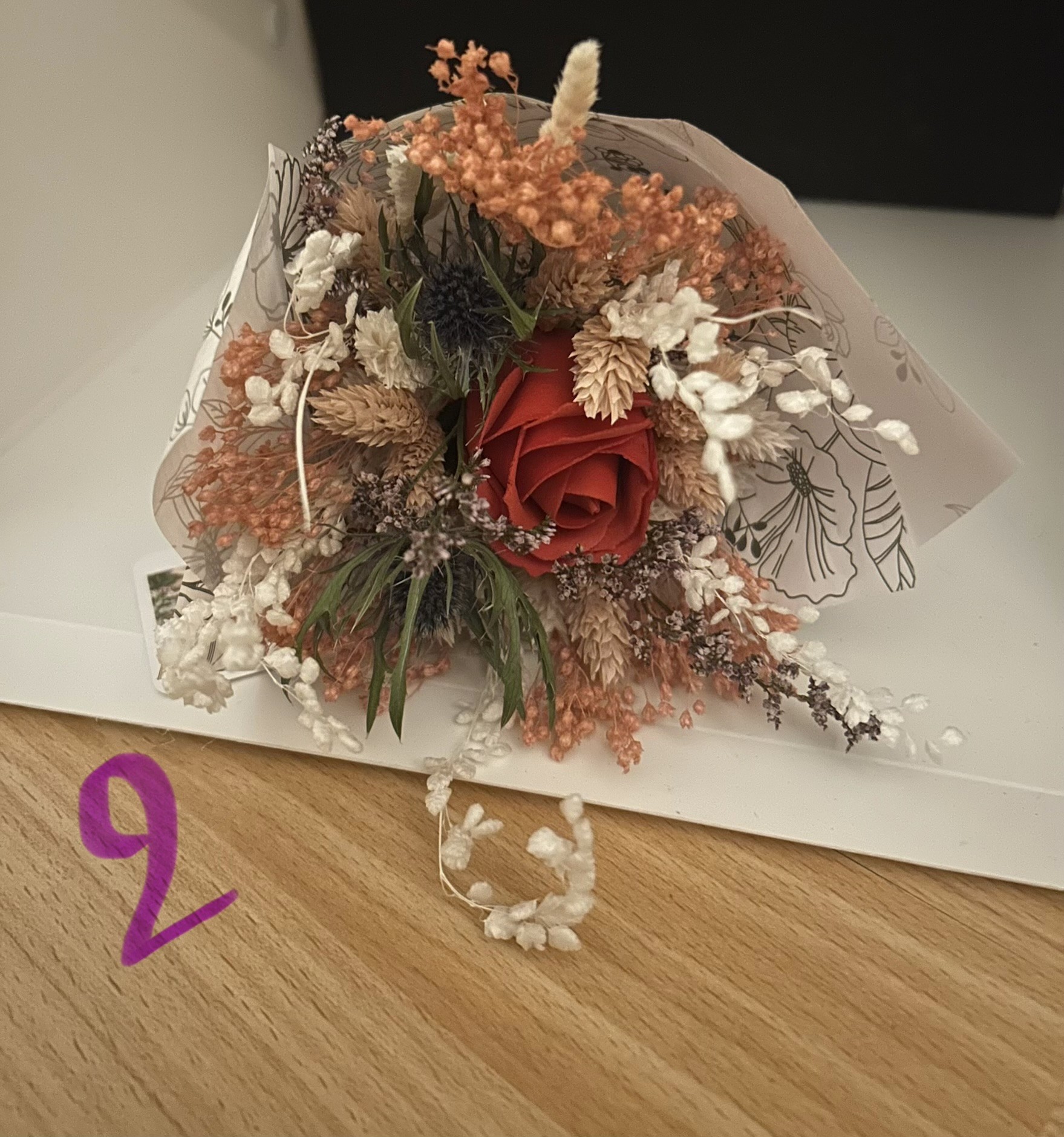 Bouquet fleurs séchées rouge avec rose rouge et blanc